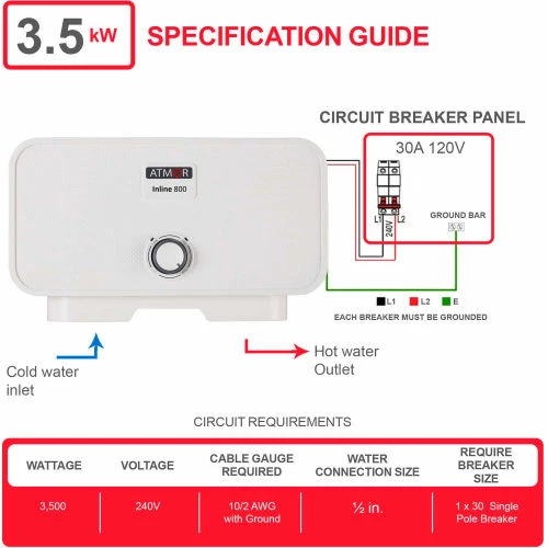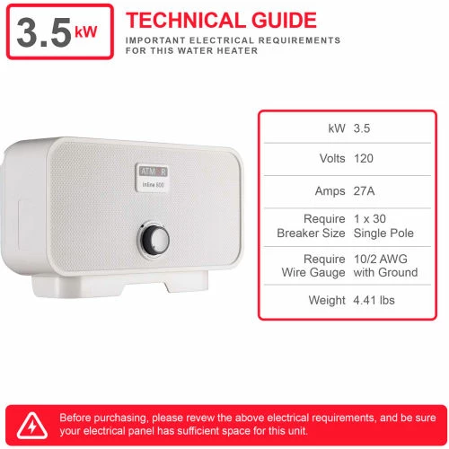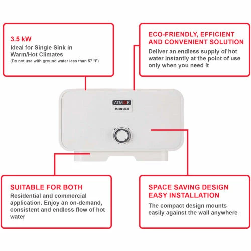 Atmor 800 120V 3.5 kW 0.5 GPM Point Of Use Tankless Electric Water Heater