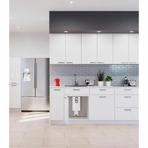 • Sleek European design is considerably smaller than a tank, requires no venting, and allows space-saving installation close to the point-of-use