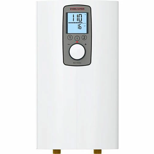 The new Direct Coil™heating system continues the benefits that are a part of the entire Stiebel Eltron electric tankless line. DHX Trend models heat water endlessly on demand at 99% efficiency. Activation rate for DHX models is a low 0.264 GPM.No venting is required and the compact European design can be installed with the unit visible. The desired output temperature is easily set using the dial and display on the cover.